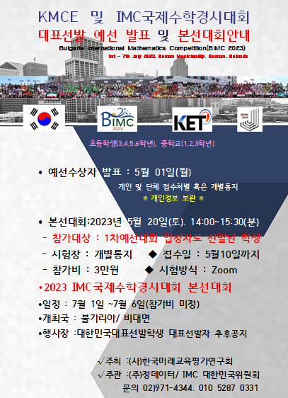 Á¦¸ñ KMCE ¹× IMC±¹Á¦¼öÇаæ½Ã´ëȸ ´ëÇ¥¼±¹ß ¿¹¼± ¹ßÇ¥ ¹× º»¼±´ëȸ¾È³» ÀÛ¼ºÀÏÀÚ 2023-05-02 KMCE ¹× IMC±¹Á¦¼öÇаæ½Ã´ëȸ ´ëÇ¥¼±¹ß ¿¹¼± ¹ßÇ¥ ¹× º»¼±´ëȸ¾È³» ÷ºÎÆÄÀÏ KMCE ¹× IMC´ëÇ¥ ¿¹¼± ¹ßÇ¥ ¹× º»¼±¾È³».hwpx